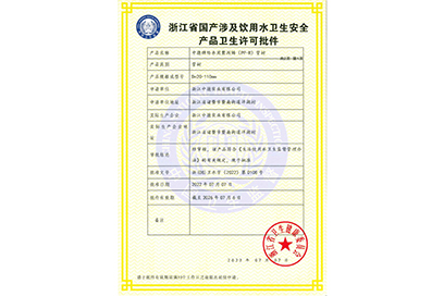 浙江省國產(chǎn)涉及飲用水衛(wèi)生安全產(chǎn)品衛(wèi)生許可批件